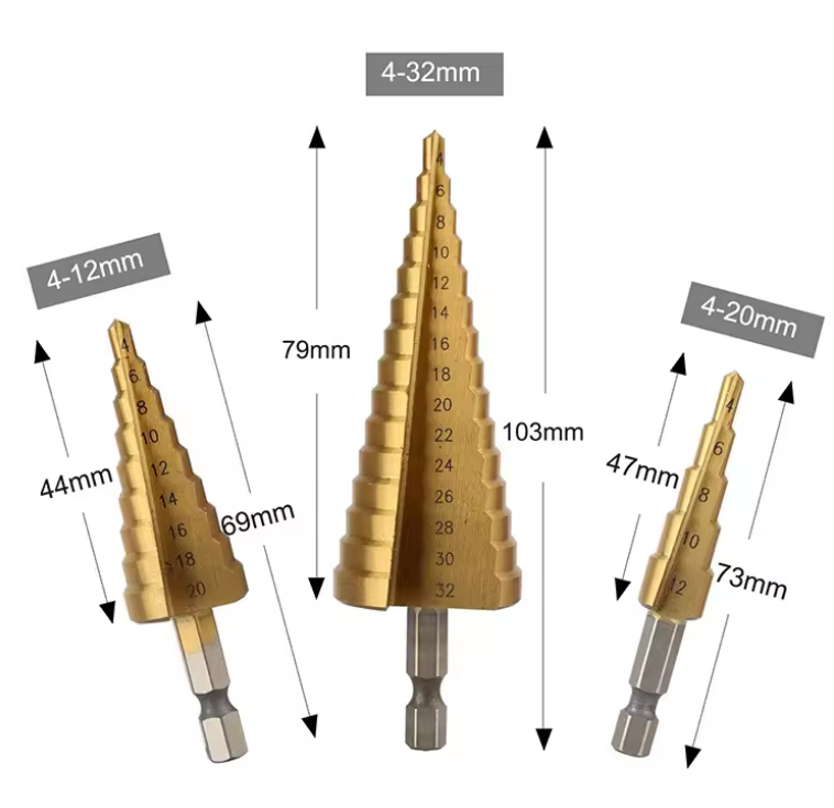🔍 Descubre la Solución: Brocas Escalonadas de Titanio que Escalan de 4 mm a 32 mm sin Necesidad de Cambiar, Ideales para Uso Profesional en Metal, Madera y Plástico Duro"